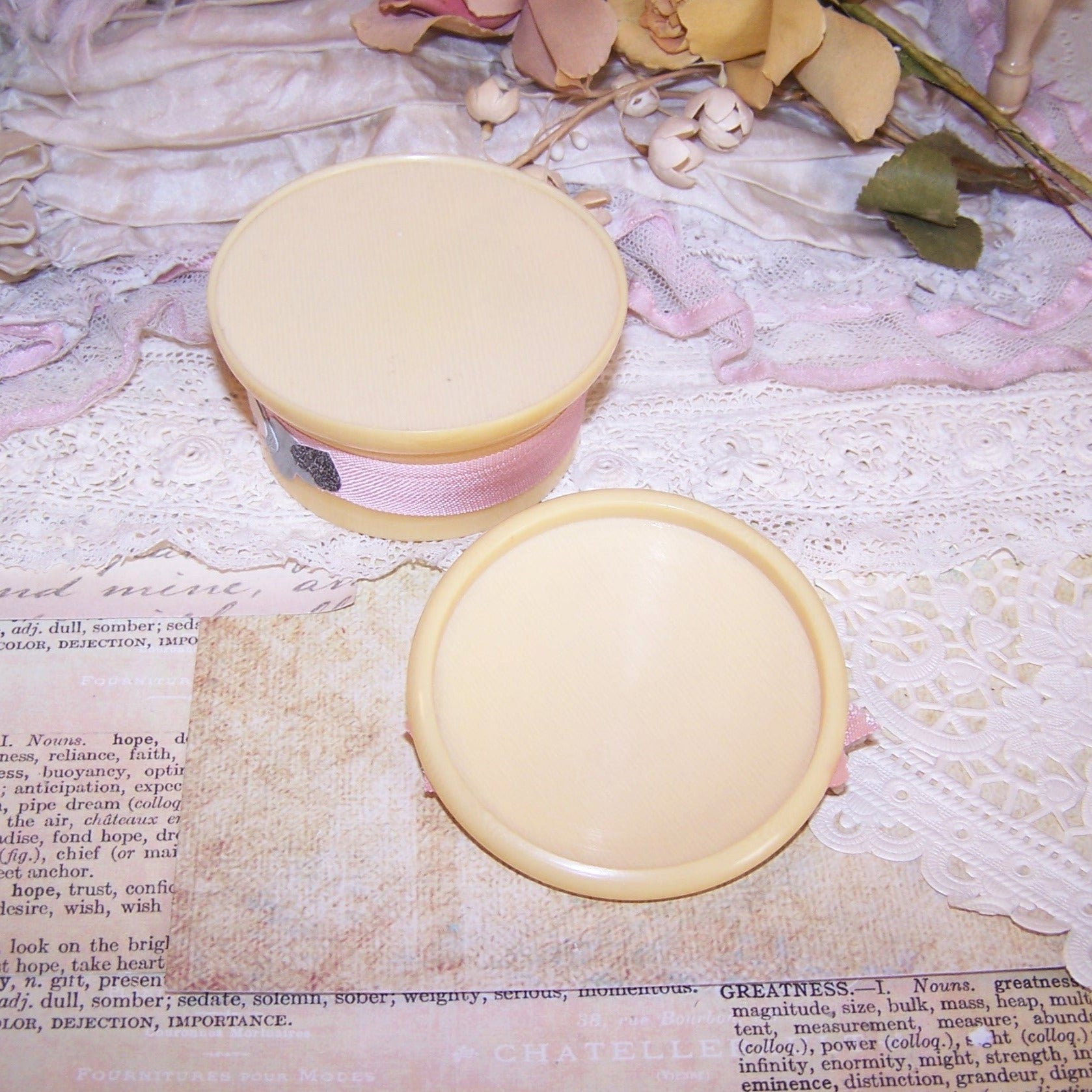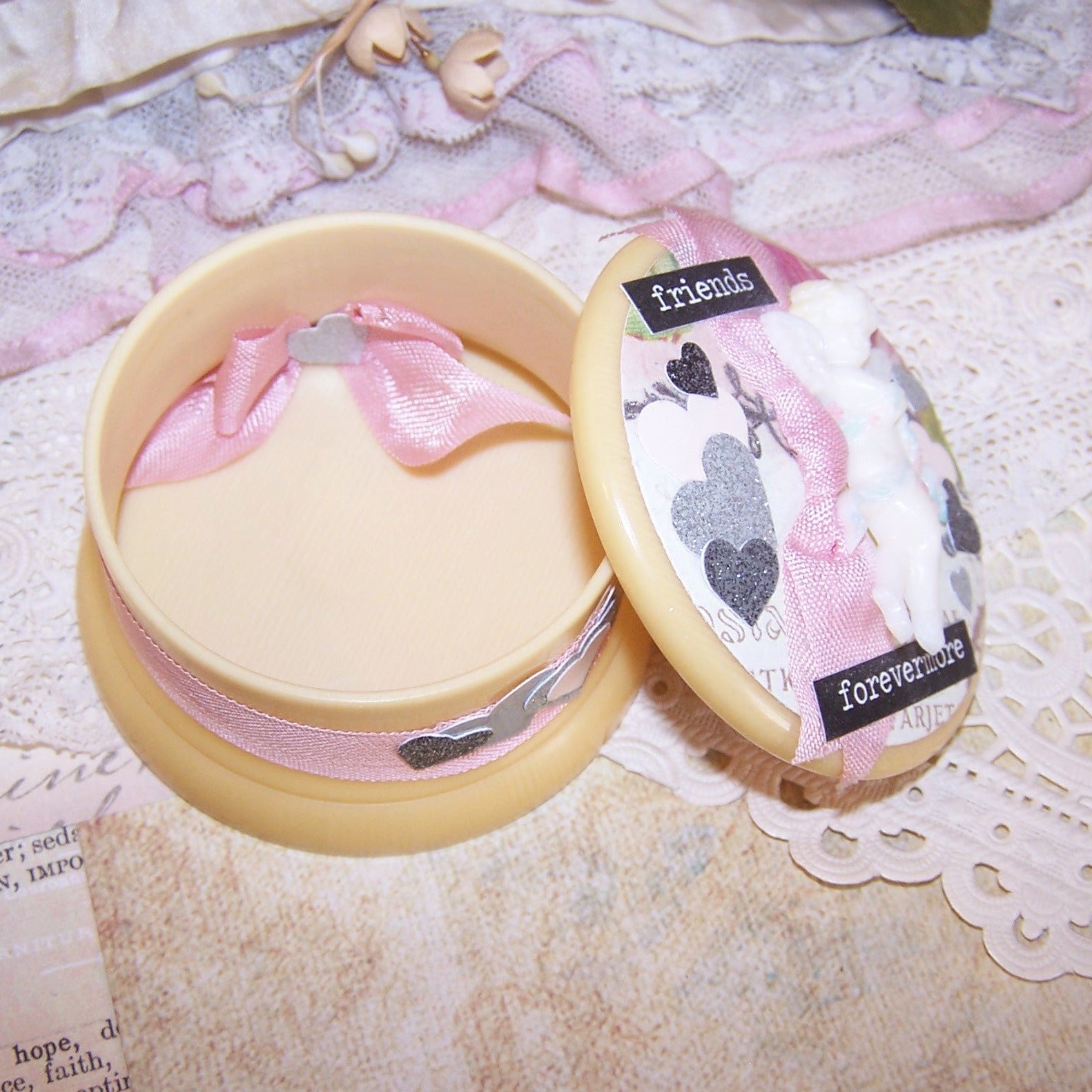 Repurposed Art Deco Celluloid Lidded Powder Box - FRIENDS FOREVERMORE