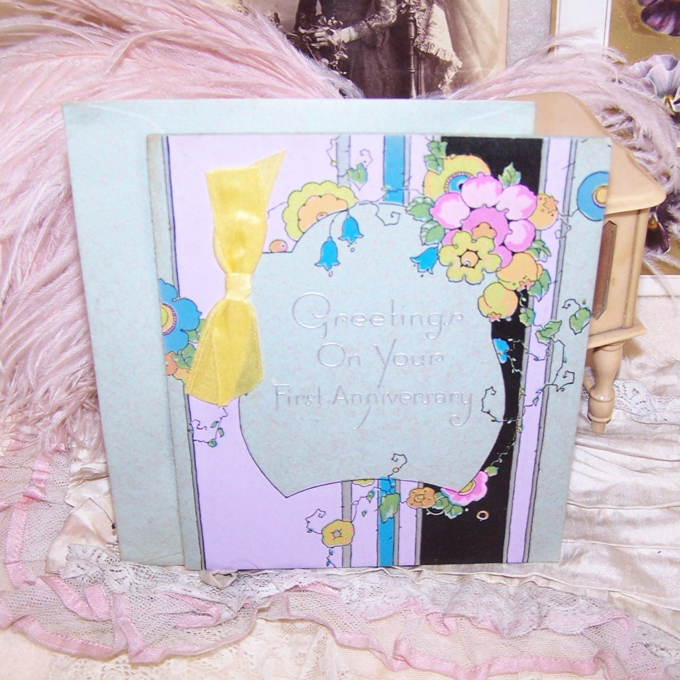 Unused ART DECO Greeting Card - Greetings on Your First Anniversary